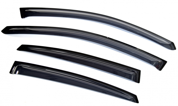 Оригинальные дефлекторы устанавливаются на внешние рамки дверей с помощью скотча 3М и специальных оригинальных креплений. Изготавливаются из акрилового стекла высочайшего качества литьевым способом.