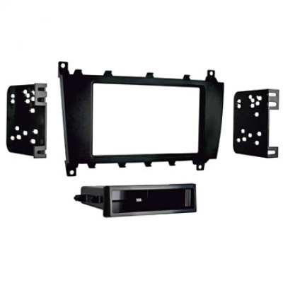 Универсальная рамка переходник для установки магнитол размера 1/2DIN в автомобили Mercedes E/C/CLK 2004+, SLK 2006+. Имеет в комплекте крепеж, необходимый для установки.
