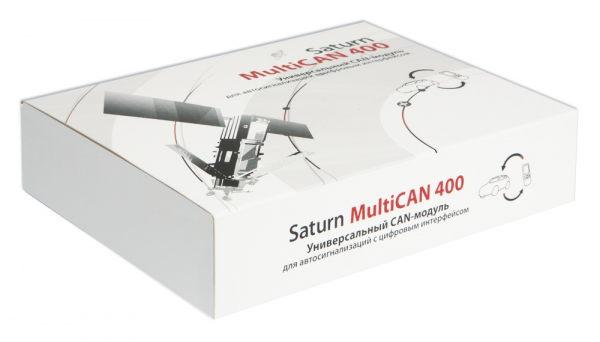 CAN модуль Saturn MultiCAN 400 предназначен для обеспечения корректной установки дополнительных систем сигнализации, не предназначенных для работы с шиной CAN напрямую, но оборудованных специальным интерфейсом для подключения данного модуля. Модуль позволяет как считывать требуемую для сигнализации информацию, так и управлять некоторыми устройствами автомобиля. Модуль подключается к автомобильной шине CAN и согласуется с ней на программном и аппаратном уровне. Saturn MultiCAN-400U может быть интегрирован в электросхему более 400 наименований моделей и модификаций автомобилей.