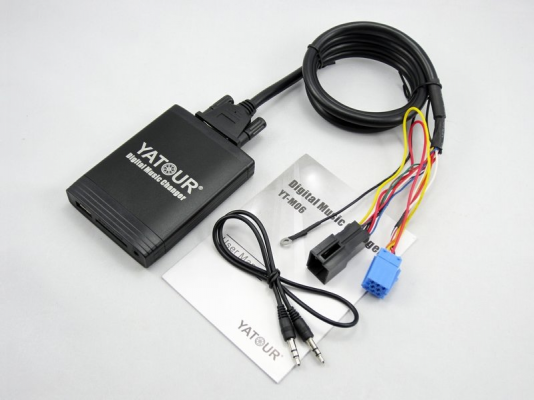 Примечание : В некоторых случаях на автомобилях Ауди разъем CD-чейнджера заблокирован. В этой ситуации понадобится Audi 20-pin разделитель. Совместимы все модели VW / Audi / Skoda с 8-пиновыми магнитолами. Описание Адаптер Yatour YT-M06— это модуль дооснащения штатных магнитол и полнофункциональное решение для декодирования и воспроизведения MP3/WMA на головном устройстве автомобиля. YATOUR обеспечивает звук высокого качества непосредственно в стерео системе через порт CD-чейнджера. YATOUR ,не урезая функционала вашей магнитолы, подключается в разъем на тыльной части аудиосистемы, и дополняет ее возможности воспроизведения с цифровых носителей. YT-M06 - цифровой чейнджер, позволяющий воспроизводить аудио с USB, SD card и AUX 3.5mm. Распознается в системе как штатный проигрыватель, позволяет управлять композициями с руля и магнитолы. Разъемы для подключения :