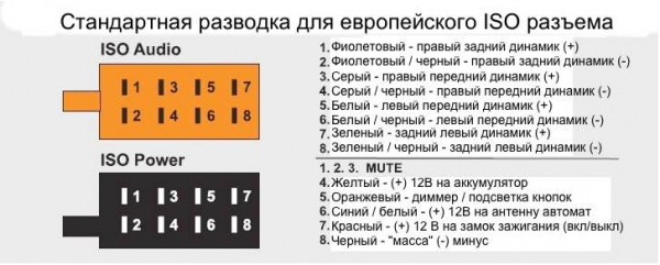 Стандартный 16-пиновый европейский ISO разъем представляет собой, как правило сдвоенную колодку (2 по 8), подробная распиновка которой приводится ниже. Использование этого разъема в автомобиле значительно облегчает снятие, установку головного устройства в силу его универсальности. Большинство европейских производителей автомобилей используют его как базовый для подключения магнитолы. После 2000 года, некоторые компании начали применять новый стандартный разъем. Этот тип разъема носит название FAKRA. Это разъем используется CAN шину. Многие сигналы передаются по этой шине: - Информация о зажигании - Информация об освещении - Информация о скорости С введением этого типа разъемов антенные разъемы также были изменены. С 2000 года ряд европейских производителей автомобилей, такие как BMW, Citroen, Ford, Mercedes-Benz, Peugeot, Volkswagen, Rover, Audi, Seat, Opel и Škoda начали использовать 40-контактный разъем, который носит название Quadlock (или Fakra). Разъем Quadlock состоит из блока 16 плоских штырей, аналогичных ISO 10487 (уже описанной нами выше еврофишки). В дополнение к 16 контактам, есть блоки дополнительных разъемов для другого оборудования. Они реализованы внутри основного разъема таким образом, что не могут быть взаимозаменяемыми (то есть полностью исключают неправильное подключение разъема). Малый разъем B имеет 12 контактов для вывода аудио сигналов. Малый разъем С имеет 12 контактов для различных аудио источников, таких как CD-чейнджер, MP3-плеер. |