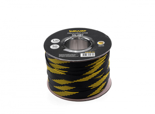 нейлоновый рукав (змейка) для кабеля 0 AWG, черно-желтый, катушка 50 метров